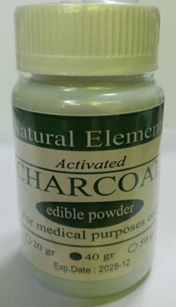 پودر شارکول ۴۰ گرمی بیمارستانی خوراکی.