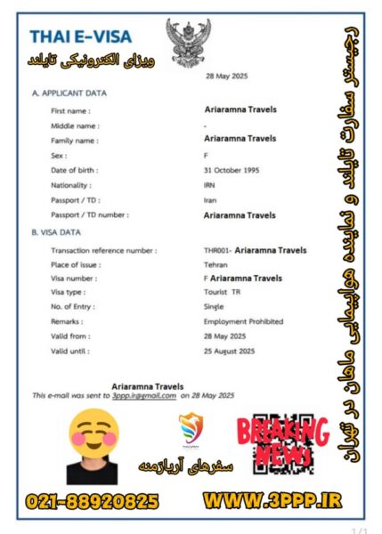 شرکت سفرهای آریارمنه رجیستر سفارت تایلند